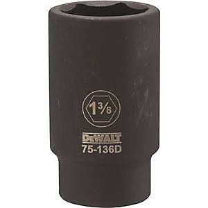 DWMT75136OSP SAE Deep Impact Socket, 3/4" Drive, 1-3/8" Thinner than wrench sockets for tough to access areas Large laser etched markings - easily identifiable Provides the impact Driver user with a socket solution Designed for use in both corded & cordless Impact drivers and wrenches.Specifications