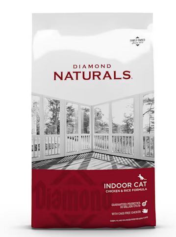 Diamond Naturals Indoor Cat is specifically formulated to meet the everyday needs of your cat while promoting an ideal body condition. Omega-6 and omega-3 fatty acids help keep the skin and coat healthy and shiny. Added fiber helps support a healthy digestive system.Specifications