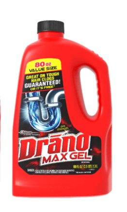 The thick bleach formula in Drano Max Gel Clog Remover cuts right through standing water, clinging to your toughest clogs to blast them fast. It works great to remove hair, soap scum, and other gunky clogs.Specifications