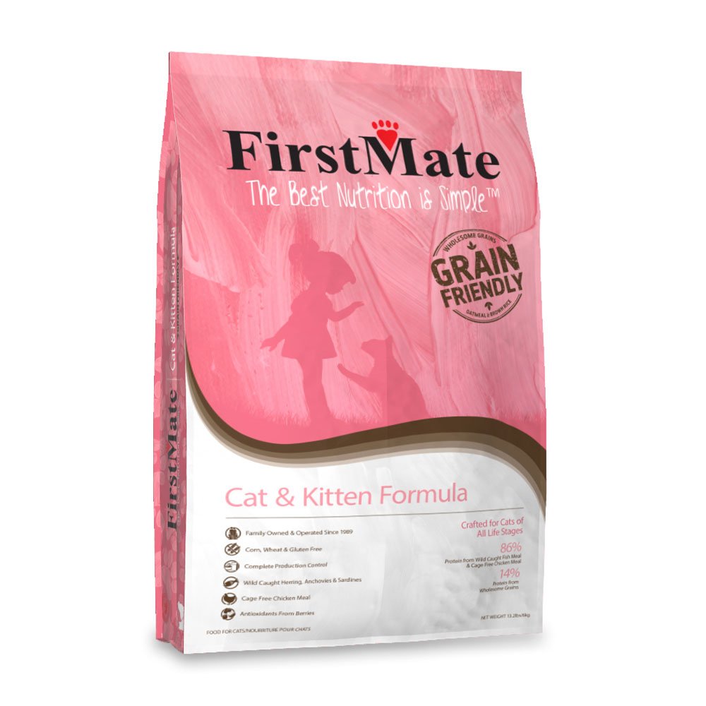 Our Cat & Kitten Formula uses humanely raised Canadian Chicken and Wild Caught Herring, Anchovies, and Sardines as a healthy source of protein. The Grain Friendly category is free of corn, wheat, soy, potato, and peas and is optimal for daily feeding. FirstMate Cat & Kitten Formula is Formulated to meet the Nutritional Guidelines Established by the AAFCO Cat Food Nutrient Profiles for All Life Stages.Specifications