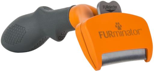 Curved edge comfortably follows pet's natural shape; Curved edge for comfortable, effective loose undercoat hair removal; Ergonomic handle for comfort and ease of use; FURejector button to quickly and easily release collected hair; Reaches through topcoat to remove loose undercoat haiR; The FURminator deShedding tool reduces loose hair from shedding up to 90% with regular use