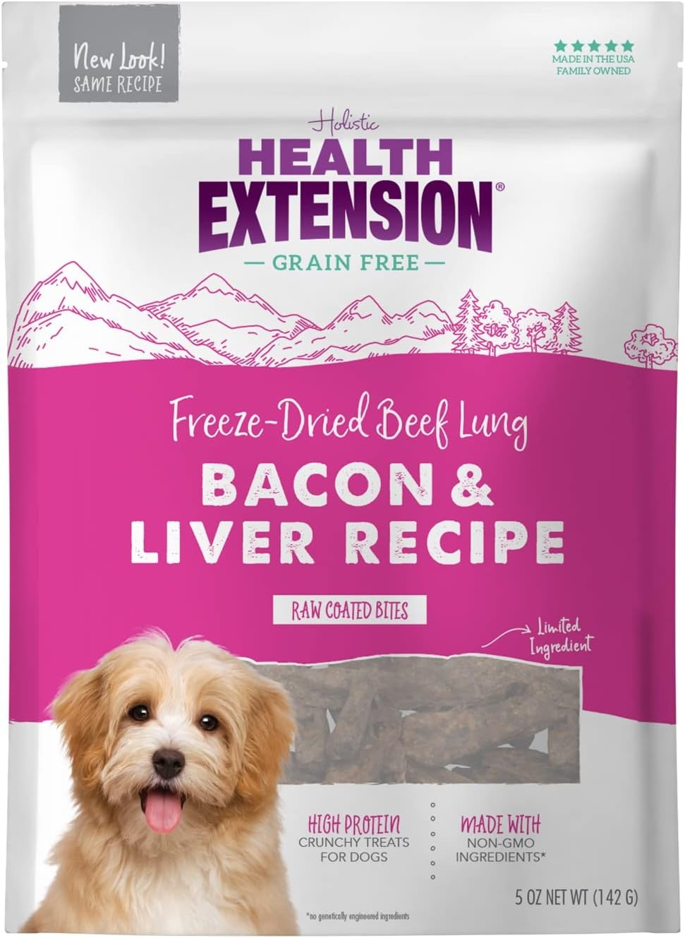 Health Extension's Bully Puffs lean and tasty treats will entice any dog! Sourced and made in the USA from 100% all-natural beef and coated with bacon and liver, these highly digestible treats don't contain any corn, wheat, soy, gluten or grains!Specifications