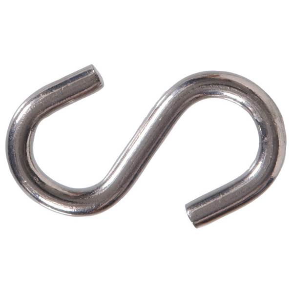 Hardware Essentials S-hooks are great for reorganizing. Use them in the workshop home or garden. S-hooks have a larger opening than 8-hooks. Use on broader rods for hanging. Stainless Steel helps prevent corrosion. Available in several sizes and finishes.Specifications