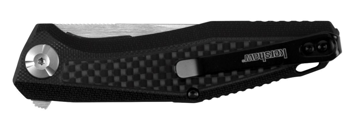 8CR13MOV HIGH-QUALITY BLADE STEEL, SATIN BLADE FINISH REDUCES RELFECTIVITY; A TOP CHOICE FOR A LIGHTWEIGHT POCKETKNIFE; ALL-WEATHER G10 HANDLE WITH EYE-CATCHING CARBON FIBER OVERLAY; DEEP CARRY CLIP; DISTINCTIVE PIVOT ADDS INTEREST, MAINTAINS THE ATMOS' CLEAN LOOK; LINER LOCK