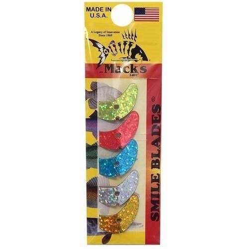 Blade is bent off-set so when it rotates it moves whatever is behind it in a crankbait back and forth type motion movement; Can be fished in front cranks jigs crawler harnesss plastics live bait and even under a float; Doesnt have to spin to create attraction; Gives you added attraction to any lure or bait; There really is no wrong way to use the Smile Blade; Ultra light weight in line mylar spinner blade; Will spin at less than 1/4mph