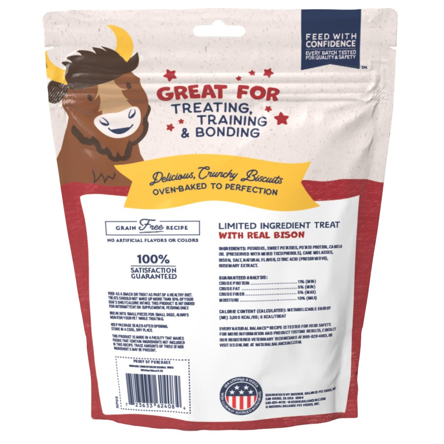 Great for treating, training & bonding! Bite-size for small breed dogs. Delicious, crunchy biscuits oven-baked to perfection with real bison. These limited ingredient treats are the perfect companion to our kibble. Made with wholesome grainswithout artificial colors or flavors?. Available in 8oz resealable pouches.Specifications