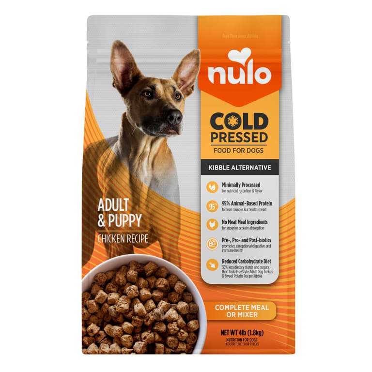 Nulo's Cold Pressed Food for dogs harnesses the benefits of minimally processed ingredients that dogs crave, in a form that's convenient to feed no matter where your adventure leads. An innovative kibble alternative, Nulo Cold Pressed is made of 95% animal-based protein and uses no meat meals for superior protein absorption. This is the perfect solution for those looking for a reduced carbohydrate diet for their dogs, plus it is made with pre, pro and post-biotics for exceptional digestive and immune system support.Specifications