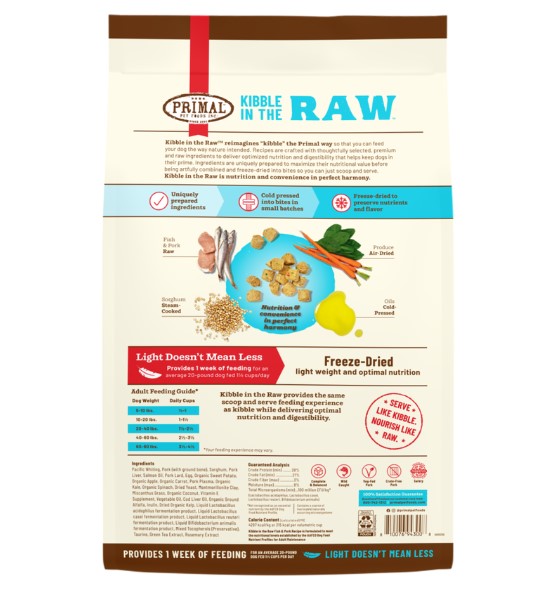 Nutrition & convenience in perfect harmony! Kibble in the Raw reimagines kibble the Primal way so that you can feed your dog the way nature intended.Specifications