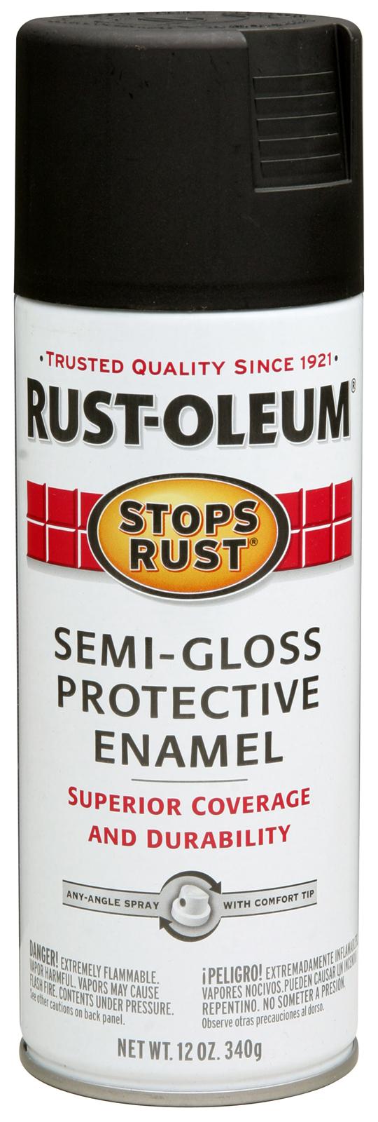 Rustoleum Stops Rust Protective Semi-Gloss Enamel is durablecorrosion-resistant and suitable for a variety of indoor and outdoor surfaces. The palette of nature inspired colors are perfect for refreshing furnituredecor and more. Paint dries to a smooth shiny finish and the superior rust prevention provides long lasting beauty.Specifications