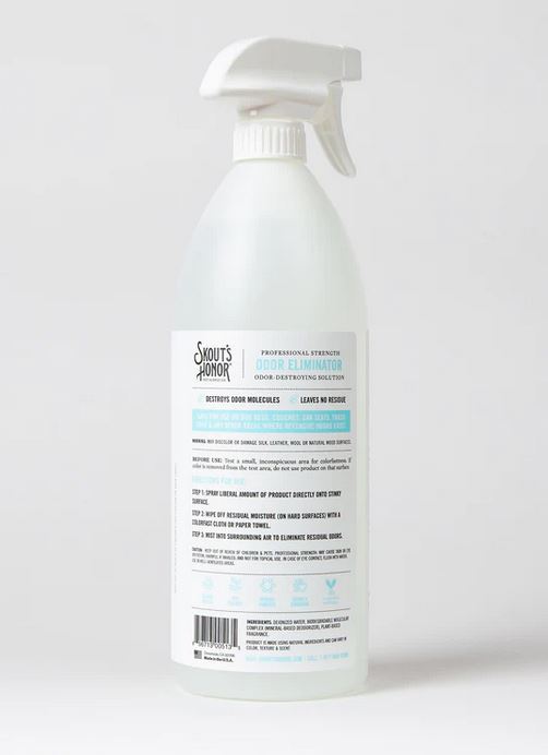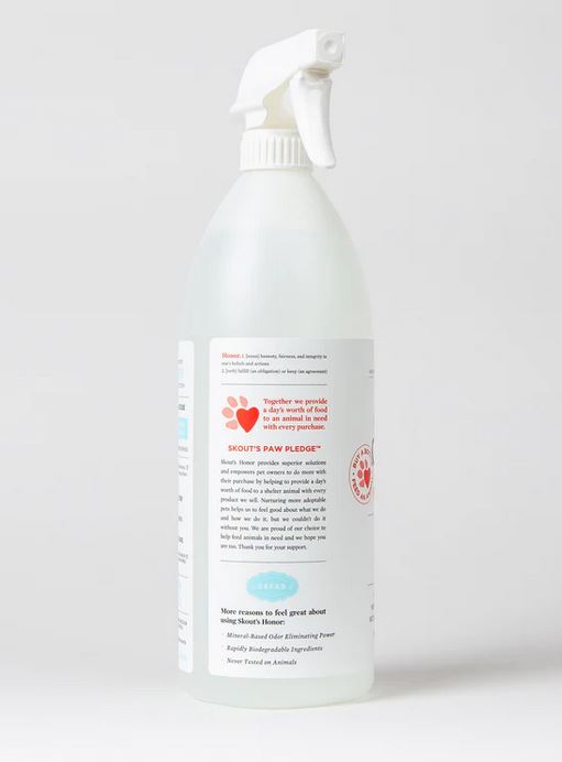 The Skout's Honor Pet Odor Eliminator destroys offensive odor molecules on contact. It is great at removing odor from any area that needs freshening up including pet beds, smelly couches, trash cans, dirty laundry, smelly cars, bathrooms, and more.Specifications