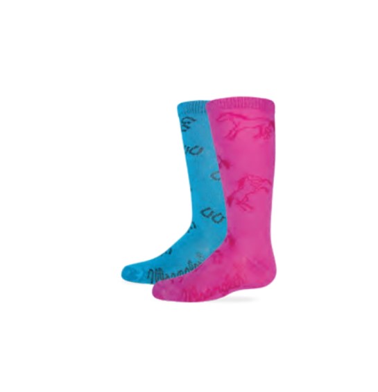 Wrangler girl’s boot sock with seamless toe, featuring soft rayon with stay up leg and top. 2-PackSpecifications