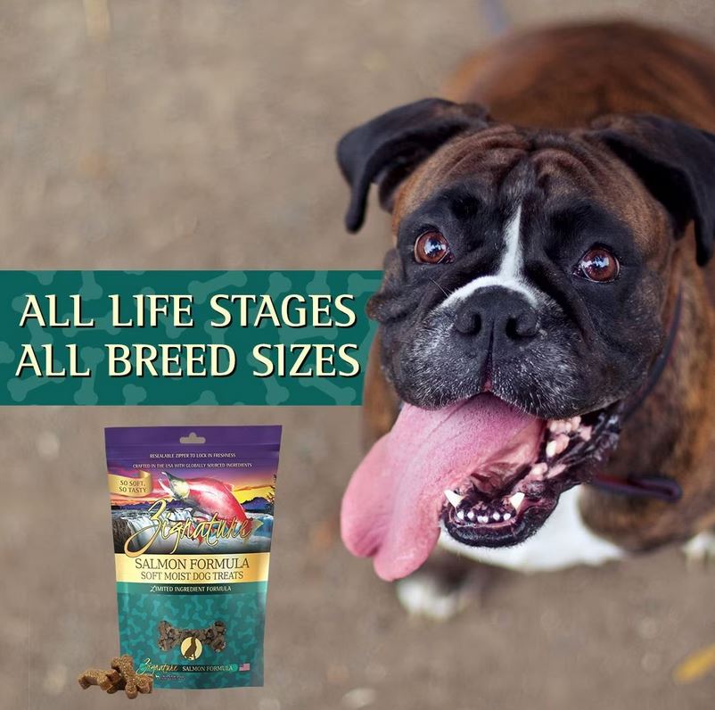 Treat time is even more rewarding with Zignature Salmon Flavored Soft Dog Treats! These savory, moist treats are made with the same limited-ingredient philosophy as Zignature’s dry and canned food. Your dog will love the drool-worthy aroma of real salmonand you’ll love knowing these soft treats go easy on his stomach. Plus, the small size is paw-fect for use during training. Zignature soft treats make an enticing, high-value reward for even the pickiest pups!Specifications